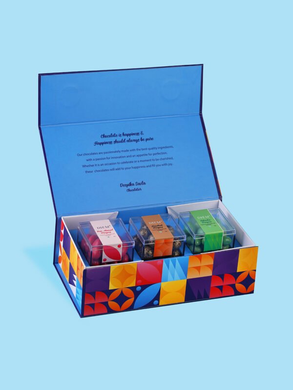 Milk Chocolate (Sugar, Cocoa Solids, milk solids, cocoa butter & emulsier (soy lecithin (INS322, INS476))), whole blueberry, blue colour, polishing agent (gum arabic (E414)), glazing agent (shellac(E904))